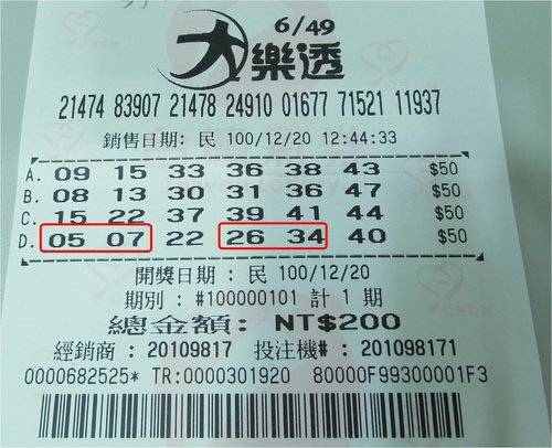 前幾天整理房間時翻到一張去年12月份的大樂透,本以為只有